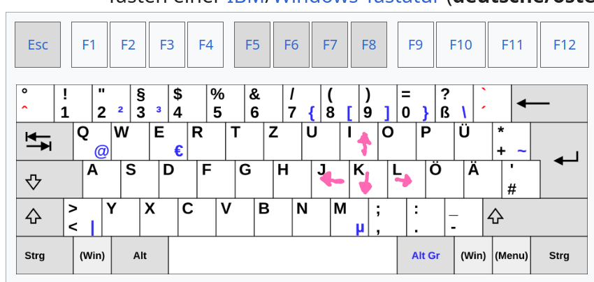 Man kennt so etwas ähnliches von VIM, wo die tasten "hjkl" als Steuertasten verwendet werden. Ich verwende aber jkl und i für Pfeil hoch, weil es näher an den Pfeiltasten Layout ist.
